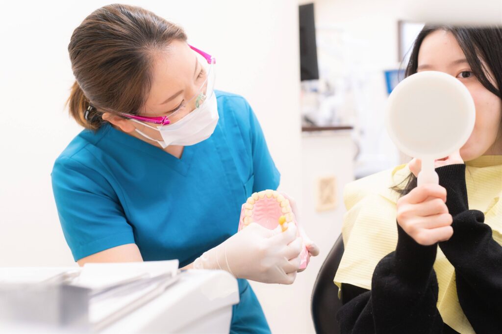 定期健診は歯石取りや歯磨き指導だけでなく、患者さまがご自身のお口の状態を理解するための時間でもあります。虫歯や歯周病の進行度や生活習慣は一人ひとり異なるため、患者さまに合わせたオーダーメイドの指導を行います。